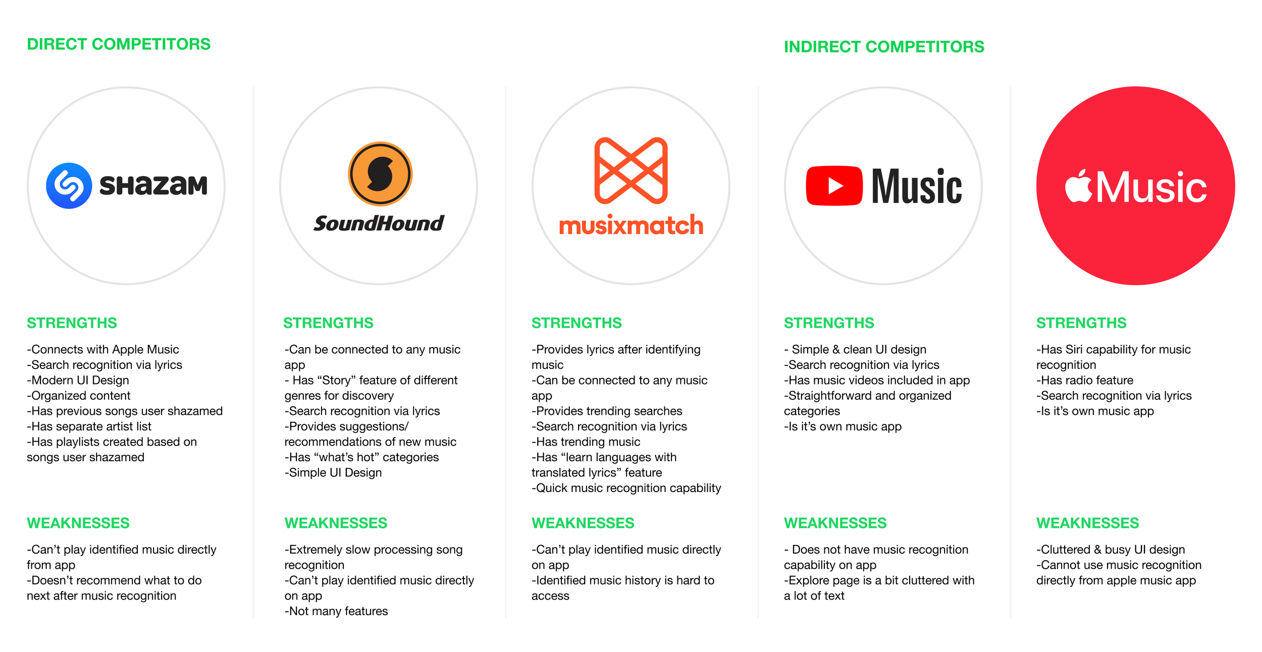 01. Analyze music recognition app competitors to understand strengths and weaknesses