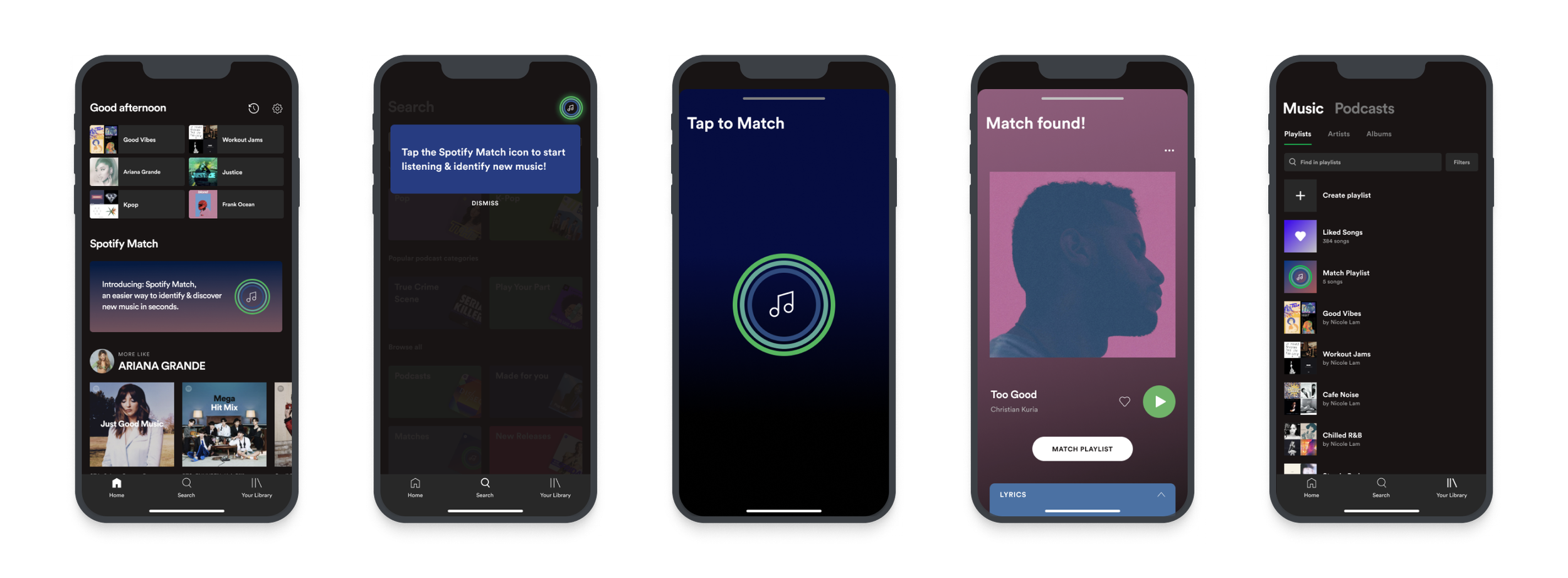 Researched and compared various music recognition apps that were similar to the new Spotify Match feature to gain perspective of the competitive market.